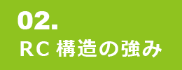 圧縮力に強いコンクリートと、引張力に強い鉄筋、その2つを組み合わせたRC造は、他の工法に比べ、非常に高い耐久力を発揮します。
